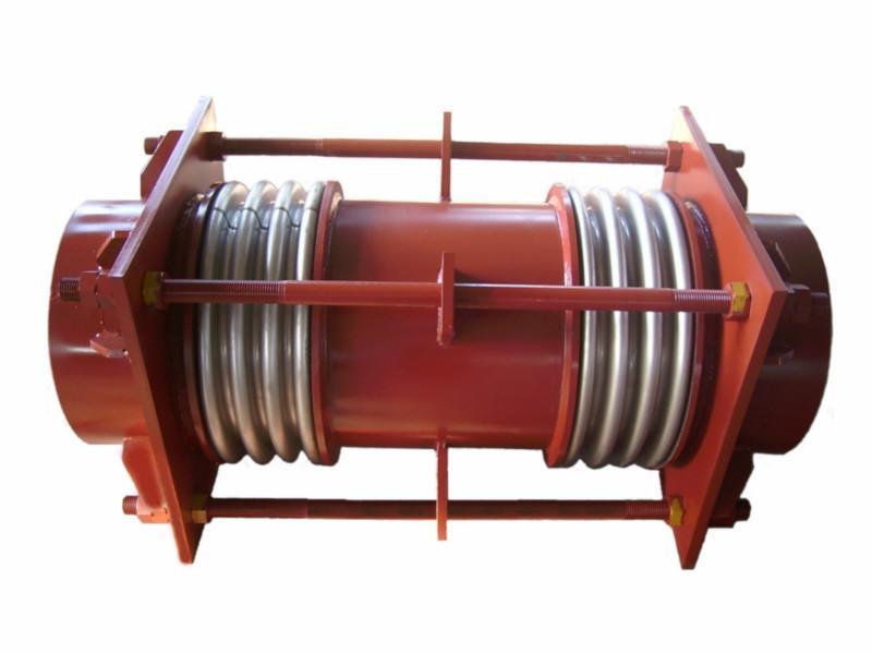 大拉桿式波紋補償器(又稱復式拉桿式)是由兩個相同的波紋管及端管、端板和拉桿組成的撓性部件,通過波紋管的角偏轉可吸收管道單平面或多平面的橫向位移。4只長拉桿能承受壓力,推力和其他附加外力的作用,拉桿兩端的螺栓出廠前已調好間距,安裝前大拉桿是松動的,在補償器工作變形后,大拉桿可以起到限制變形量,保護波紋管的作用。